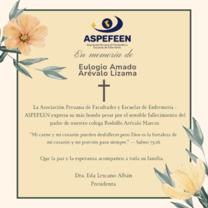 La Asociación Peruana de Facultades y Escuelas de Enfermería – ASPEFEEN expresa su profundo pesar por el fallecimiento del padre de nuestro colega Rodolfo Arévalo